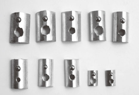 彈性螺母塊能被直接塞進(jìn)鋁型材槽坑中的任意裝配點,他背部的彈簧鋼球能固定它的位置,使安裝十分簡單且可靠,它是型材連接中使用較多的配件之一。
