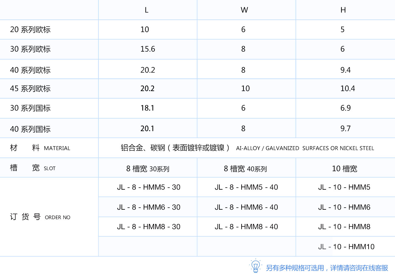滑塊螺母安裝時(shí)需預(yù)塞至型材槽坑內(nèi),便于在型材上連接各種配件。