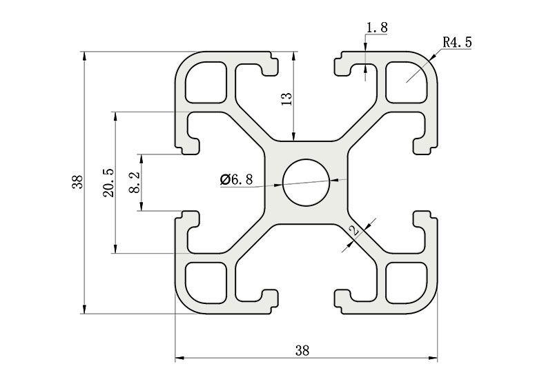 適用于應(yīng)力及強(qiáng)度較大的框架組合結(jié)構(gòu),它的外型采用圓角過渡,表面經(jīng)過陽極氧化處理,高雅美觀并抗腐蝕,它通常采用M8X20高強(qiáng)度專用螺栓加彈性扣件的內(nèi)部連接方式,堅固而又可靠,是工業(yè)框架應(yīng)用較為廣泛的型材之一。