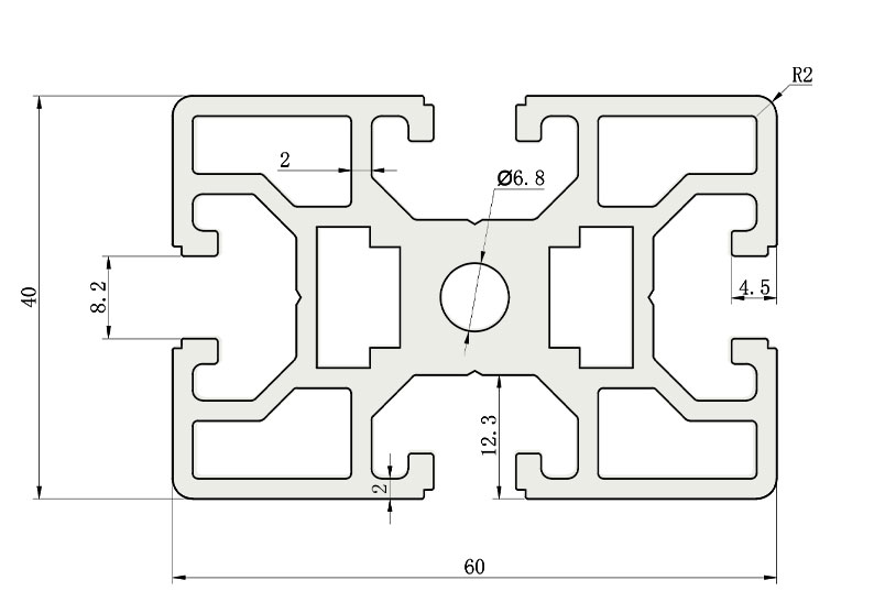 適用于應(yīng)力及強(qiáng)度較大的框架組合結(jié)構(gòu),它的外型采用圓角過渡,表面經(jīng)過陽極氧化處理,高雅美觀并抗腐蝕,它通常采用M8X20高強(qiáng)度專用螺栓加彈性扣件的內(nèi)部連接方式,堅(jiān)固而又可靠,是工業(yè)框架應(yīng)用較為廣泛的型材之一。