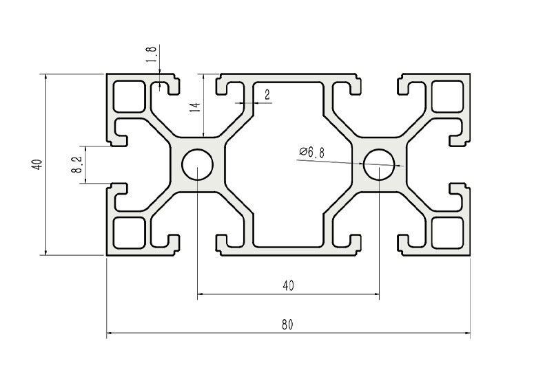 適用于應(yīng)力及強(qiáng)度較大的框架組合結(jié)構(gòu),它的外型采用圓角過渡,表面經(jīng)過陽(yáng)極氧化處理,高雅美觀并抗腐蝕,它通常采用M8X20高強(qiáng)度專用螺栓加彈性扣件的內(nèi)部連接方式,堅(jiān)固而又可靠,是工業(yè)框架應(yīng)用較為廣泛的型材之一。