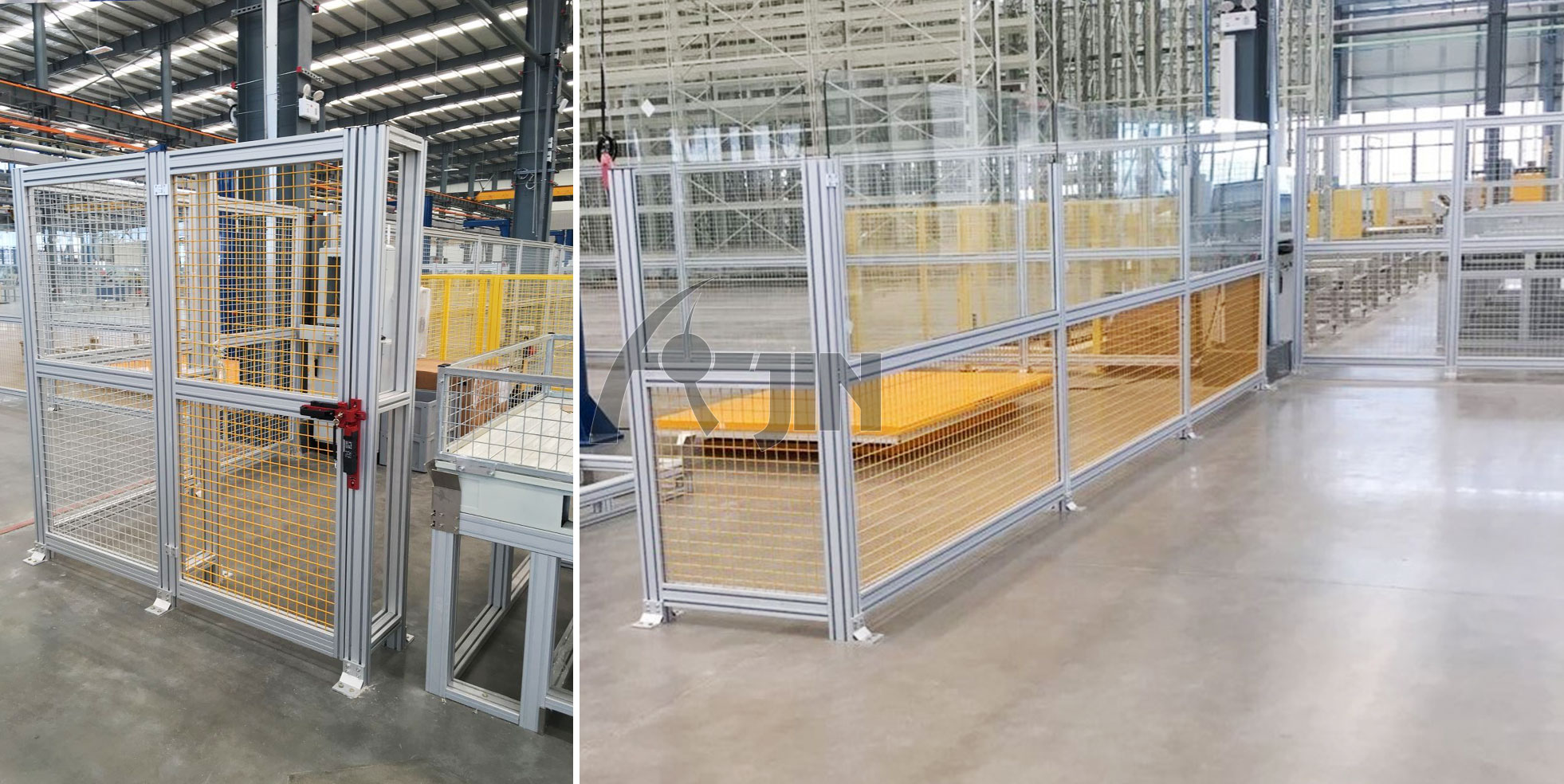 機(jī)械防護(hù)主用采用網(wǎng)和板兩種形式,常用于機(jī)器人外圍防護(hù)、汽車(chē)生產(chǎn)車(chē)間外圍防護(hù)、機(jī)械設(shè)備外圍防護(hù)等,可有效地保護(hù)設(shè)備,保障安全生產(chǎn)。