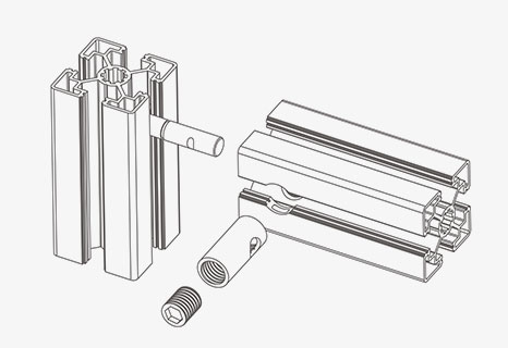 用于兩根鋁型材90度的直角連接。安裝時(shí),它隱藏在型材內(nèi)部,請(qǐng)根據(jù)實(shí)物加工孔位。